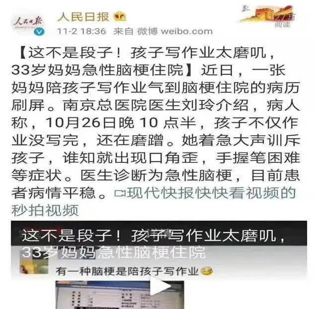 更有甚者,孩子写作业磨叽,妈妈直接气到脑梗。