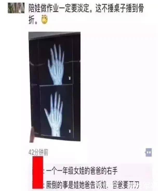 孩子一年级,爸爸陪娃写作业,捶桌子把手捶到骨折。